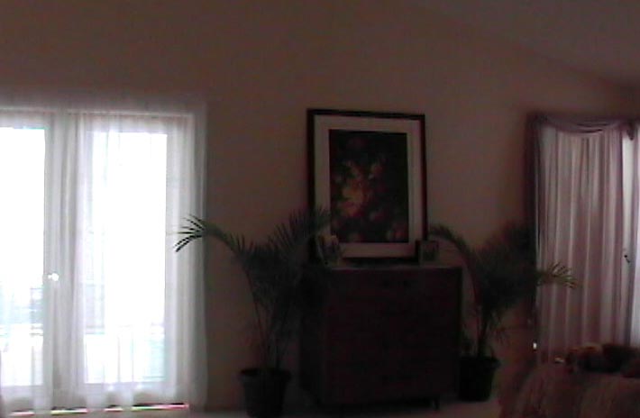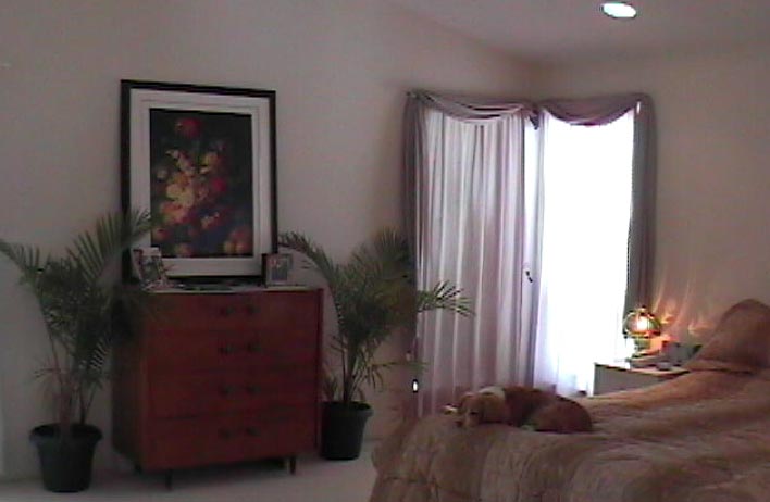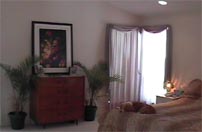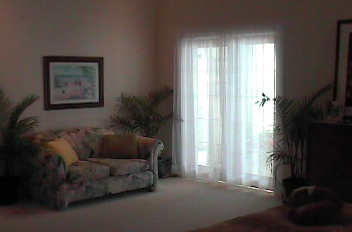 Each Window in the Sunroom has a set of Eggshell Sheers, including the Windowed Sundeck Door. Very pretty. These drapes are soft and elegant -- this is already a fantastic room, but these Window Dressings take it right over the top!