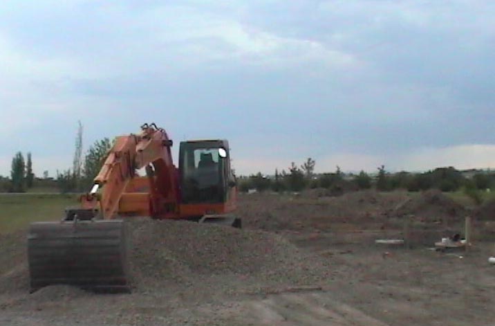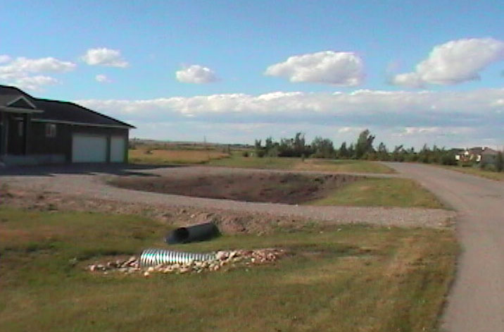 These are the really, really early days of the Driveway. Initially, Dwight wanted a straight Drive right up to the Garage, but that seemed insane (see how calm everyone is during a build -- if someone doesn't agree with you, suddenly they're insane! ha,ha,ha!) to me, what with all this space, 'n all! So I finally won that battle, and the Circular Drive went in. Dwight loves it, of course, and now firmly believes it was all his idea... as long as I got my way, I don't care a bit if he wants to believe that! yuff, yuff!