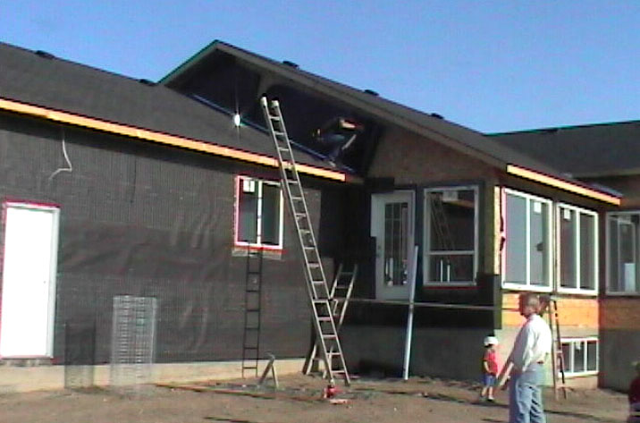The House Wrap goes on after all the Framing is done and the Windows and Doors are in.... the Lock Up Stage. It's an exciting time, because once the House is Wrapped, it can then have the final Exterior Finish put on.