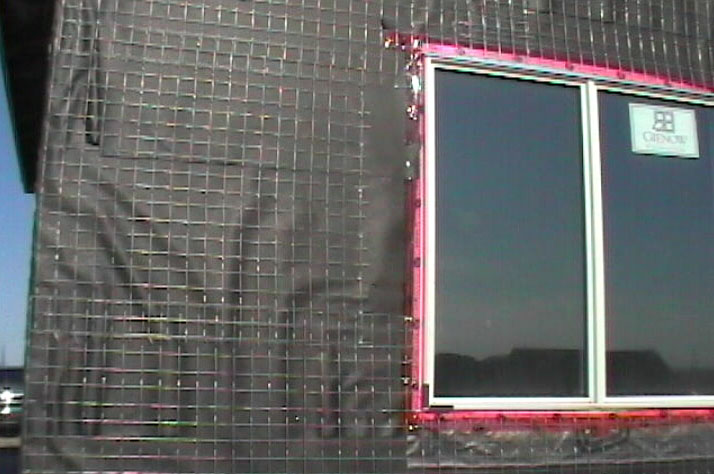 There's a better close-up shot of the Wrap and the Wire. There are different types of House Wrap -- usually the Company you hire to Wrap your House will have their own preference, and I'm sure they will be more than happy to tell you why they like the product they use the best ... and remember to get a few quotes on this, too, like all the other jobs in the House Building Process!