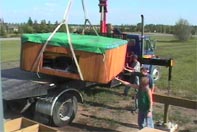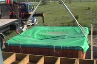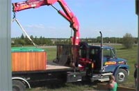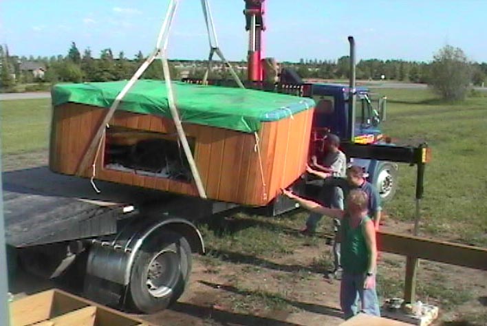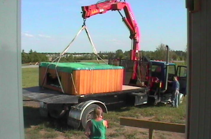 The Crane arrived, yesterday, from High River Rentals and they Craned the Hot Tub onto it's new Steel and Wood Frame Platform. The Tub will sit below our Sight-line when we're sitting in the Sunroom -- we don't want to miss out on any bit of the spectacular View! The whole deck was designed to maintain the View from the Sunroom.
