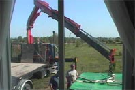 Here's Dwight lowering the Tub into place. Dwight works with Cranes all the time in his line of work (Mechanical Contractor), so he's very comfortable guiding an enormous object that could crush him... that's totally outside of my realm!