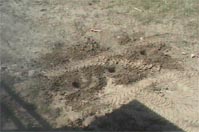 The new Patio will go right outside the Walk-Out Doors. (And, no, the house isn't pink -- just the way the sun's hitting it!) Dwight is going to build a Retaining Wall on the far Right hand side, just to prevent any mud from sliding into the Patio during a major storm. Dwight wants to put in a Cement Pad, then we'll Tile it with Slate Tile. Should look lovely!