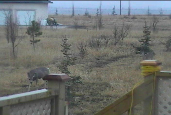 These Deer show up almost every night, and we really love to watch them. Even Tia (our wee dog!) likes to watch them. We thought she'd be a raving looney out there with the deer, but for some reason -- fear-based, no doubt! -- she just sits and watches them. The really hilarious thing is that when the deer see Tia, and she sees the Deer, they all stand perfectly still, staring at each other. Like, "If I don't move, nobody will see me..." Oh, ye of little brain! Sooo funny!