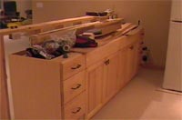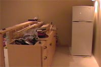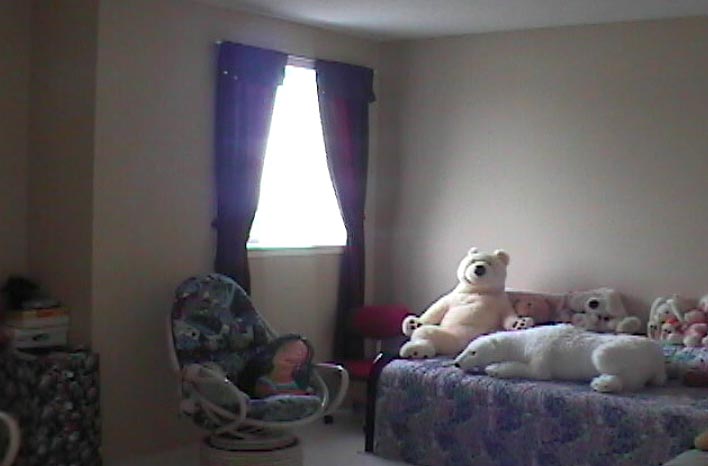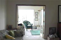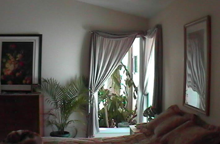 Well, it took us a long time to actually find the time to start with the serious Decorating -- in these early pictures, it looks like an episode from ' Decorating By Monkeys'! ha,ha! But with a few trips to Linens 'N Things, the house came together really quickly. The Sheers are all Eggshell throughout the whole house, so that provides a nice sense of continuity (now did the monkeys think of that?? Noooo... too busy thinking about bananas, I bet!).
